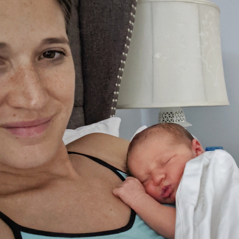 And on that note, here’s a picture of a very tired mama with a very tiny new baby.